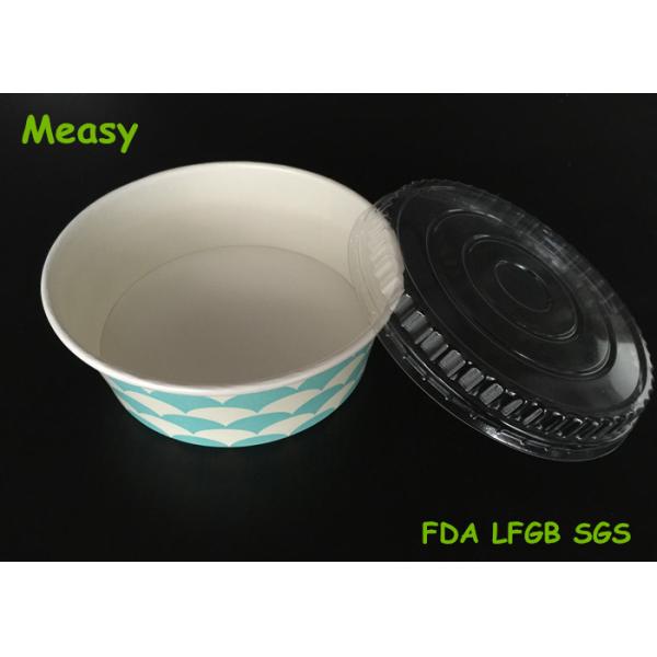 Paper Salad Bowl With Plastic Lid To Contain Fruit Salad, Teal Color And Watermelon Red